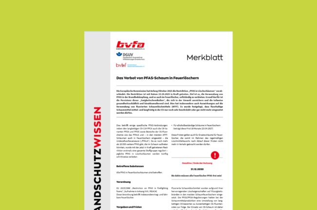 Verantwortung im Brandschutz – warum der bvfa und seine Mitglieder das PFAS-Verbot aktiv unterstützen Frage: Herr Dr. Krause, die neue EU-Verordnung zu PFAS in Feuerlöschern ist beschlossen. Warum ist dieses Thema für den bvfa und seine Mitglieder mehr als nur eine weitere Regulierung? Dr. Krause: Weil es im Kern um Verantwortung geht. Verantwortung für die…